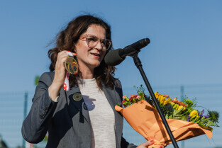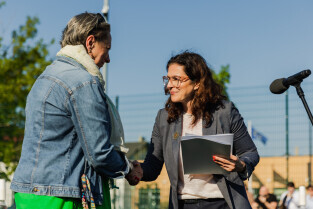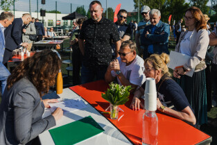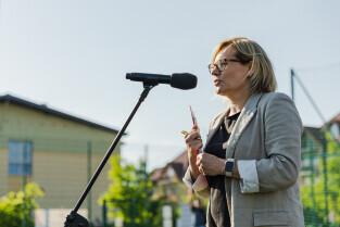 Gdańsk, ZSO nr 2 ul. Wodnika. Spotkanie Prezydent Gdańska z mieszkańcami Osowej. Nz. Prezydent Gdańska Aleksandra Dulkiewicz