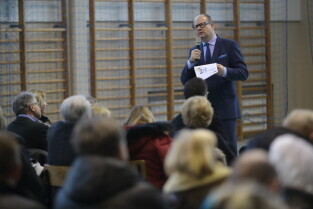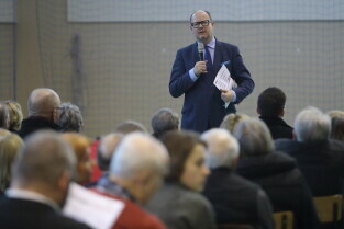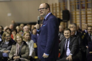 Gdańsk. Spotkanie Prezydenta Gdańska z mieszkańcami Brzeźna z cyklu „Twoja dzielnica – Twój Gdańsk”. Nz. Prezydent Gdańska Paweł Adamowicz.