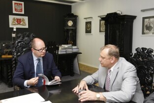 Urząd Miejski w Gdańsku. Spotkanie Prezydenta Gdańska Pawła Adamowicza z Konsulem Generalnym Republiki Białorusi w Gdańsku Aleksandrem Korolem