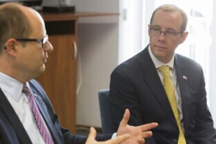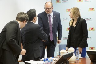 Gdańsk, Urząd Miejski. Spotkanie Prezydenta Gdańska Pawła Adamowicza z grupą doradców kongresmenów i senatorów amerykańskich