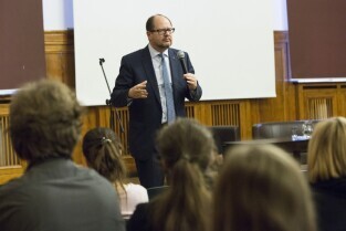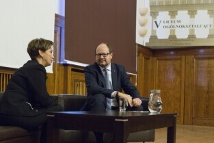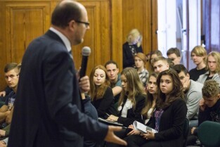Gdańsk Oliwa, V Liceum Ogólnokształcące. Spotkanie Prezydenta Gdańska Pawła Adamowicza z klasami maturalnymi