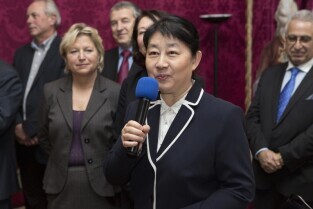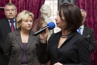 Spotkanie noworoczne Stowarzyszenia Konsulów Honorowych. Gdańsk, Dom Uphagena, ul. Długa. Nz. przemawia Konsul Honorowa Królestwa Niderlandów Magdalena Pramfelt