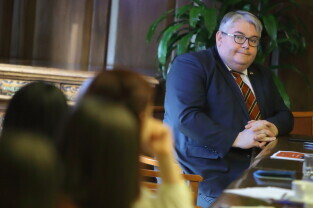 Gdańsk. Spotkanie delegacji z Mariupola z władzami Gdańska. Nz. Przewodniczący Rady Miasta Bogdan Oleszek.