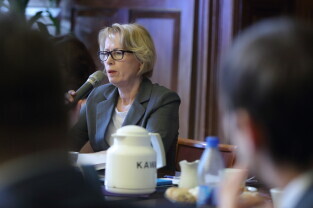 Gdańsk. Spotkanie delegacji z Mariupola z władzami Gdańska. Nz. Skarbnik Miasta Teresa Blacharska.