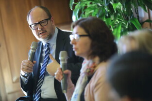 Gdańsk. Spotkanie delegacji z Mariupola z władzami Gdańska. Nz. Prezydent Gdańska Paweł Adamowicz.
