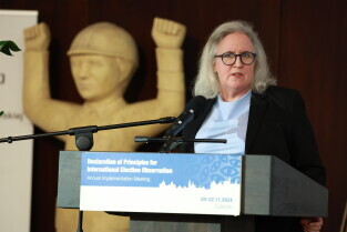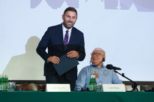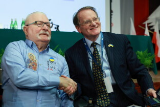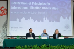 Gdańsk. Spotkanie dot. wdrażania Deklaracji Zasad Międzynarodowej Obserwacji Wyborów z udziałem Lecha Wałęsy i wiceprezydenta Piotra Borawskiego.