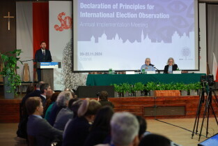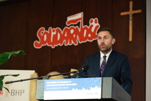 Spotkanie dot. wdrażania Deklaracji Zasad Międzynarodowej Obserwacji Wyborów z udziałem Lecha Wałęsy i wiceprezydenta Piotra Borawskiego