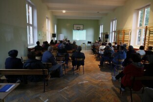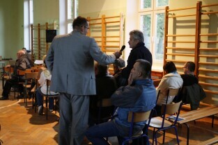 Spotkanie informacyjne poświęcone przebudowie Kanału Raduni na terenie Gdańska, realizowanego w ramach projektu "Kompleksowe zabezpieczenie przeciwpowodziowe Żuław - Etap I - Miasto Gdańsk". Gdańsk Św. Wojciech, SP nr 40.