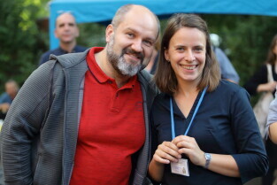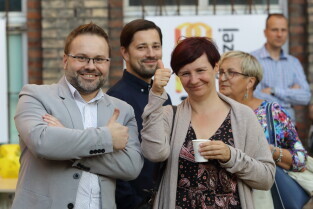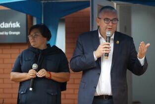 Gdańsk. Spotkanie integracyjne organizacji pozarządowych. Nz. Beata Matyjaszczyk z Chorągwii Gdańskiej ZHP i Wiceprezydent Gdańska Piotr Kowalczuk.