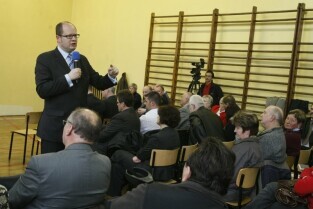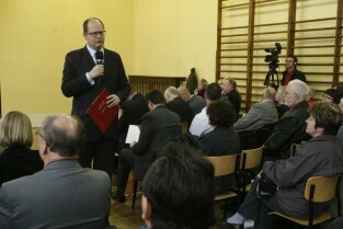 Spotkanie Prezydenta Gdańska Pawła Adamowicza z mieszkańcami dzielnic: Krakowca i Górek Zachodnich. Gdańsk, Szkoła Podstawowa na Krakowcu