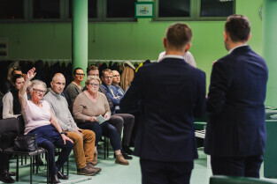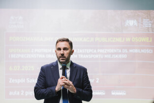 Gdańsk, ZSO nr 2 ul. Wodnika. Spotkanie o komunikacji publicznej w Osowej. Z mieszkańcami dzielnicy spotkał się Piotr Borawski, zastępca prezydent Gdańska ds. mobilności i bezpieczeństwa oraz przedstawiciele Zarządu Transportu Miejskiego, na czele z dyrektorem ZTM Łukaszem Kłosem.
