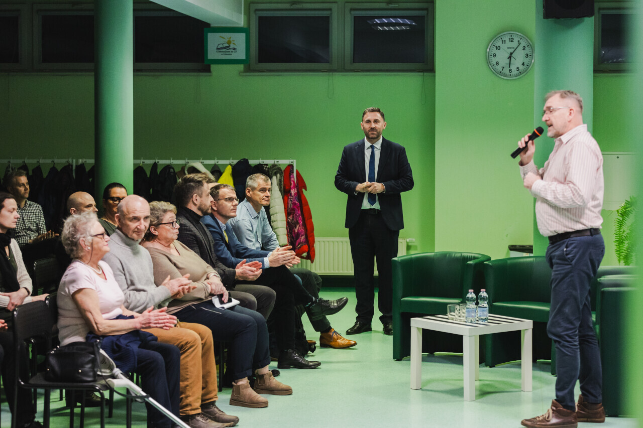 Gdańsk, ZSO nr 2 ul. Wodnika. Spotkanie o komunikacji publicznej w Osowej. Z mieszkańcami dzielnicy spotkał się Piotr Borawski, zastępca prezydent Gdańska ds. mobilności i bezpieczeństwa oraz przedstawiciele Zarządu Transportu Miejskiego, na czele z dyrektorem ZTM Łukaszem Kłosem.
