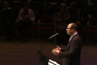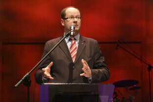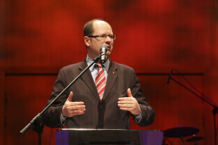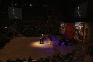 Spotkanie obywatelskie Prezydenta Gdańska Pawła Adamowicza z mieszkańcami. Gdańsk, Filharmonia Bałtycka