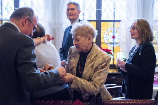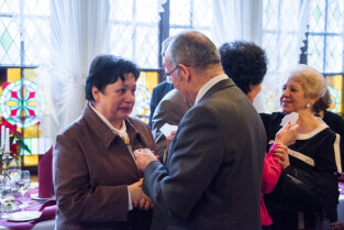 Spotkanie opłatkowe środowiska kombatanckiego i osób represjonowanych woj. pomorskiego. Gdańsk ul. Szeroka, Restauracja Pod Łososiem. Nz. (po prawej) Hanna Zych-Cisoń