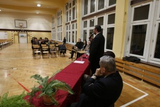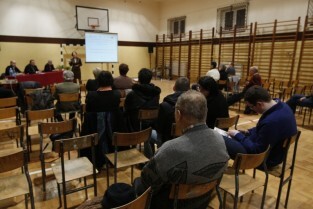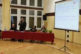 Spotkanie informacyjne poświęcone przebudowie Kanału Raduni na terenie Gdańska, realizowanego w ramach projektu "Kompleksowe zabezpieczenie przeciwpowodziowe Żuław - Etap I - Miasto Gdańsk". Gdańsk Orunia, ZKPiG nr 5 przy ul. Małomiejskiej