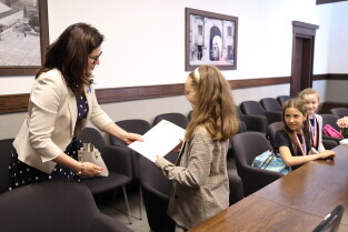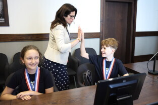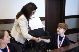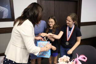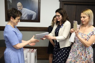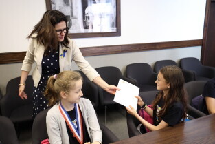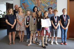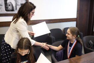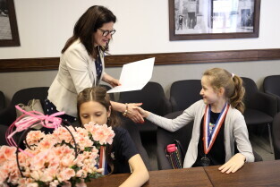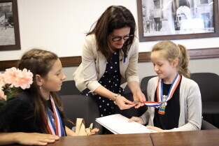 Spotkanie prezydent Gdańska Aleksandry Dulkiewicz z wicemistrzami świata Odysei Umysłów.