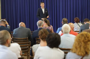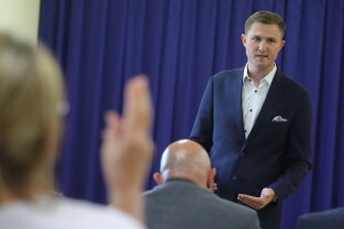 Gdańsk. Twoja dzielnica - Twój Gdańsk. Spotkanie prezydenta z mieszkańcami dzielnicy Strzyża. Nz. Wiceprezydent Gdańska Piotr Kowalczuk.