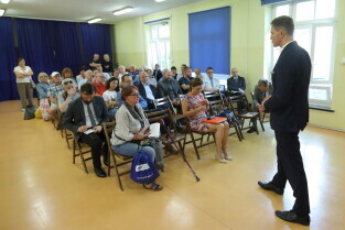 Gdańsk. Twoja dzielnica - Twój Gdańsk. Spotkanie prezydenta z mieszkańcami dzielnicy Strzyża. Nz. Wiceprezydent Gdańska Piotr Grzelak.