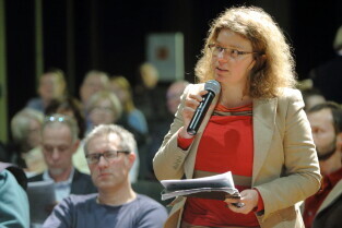 Gdańsk, Klub Żak. Konsultacje projektu uchwały w sprawie wyznaczania obszarów zdegradowanych i obszarów rewitalizacji. Nz Ewa Pielak - Kierownik Referatu Rewitalizacji.