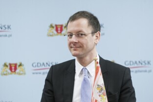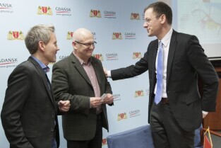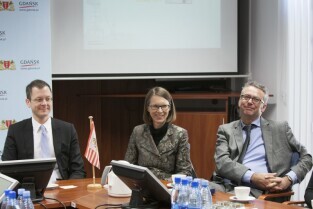 Gdańsk, Urząd Miejski. Spotkanie Senatora ds. Gospodarki, Pracy i Portów z Bremy (Niemcy) Martina Guenthnera z władzami Gdańska, poświęcone rewitalizacji terenów po-stoczniowych