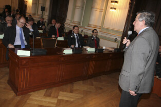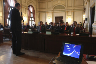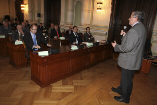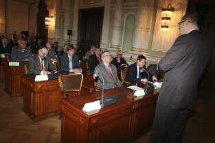 Spotkanie Społecznego Komitetu Wsparcia EURO 2012 i Pomorskiego Komitetu Organizacyjnego EURO 2012. Gdańsk, Nowy Ratusz. Nz. przemawia Piotr Soyka, przewodniczący SKWE 2012