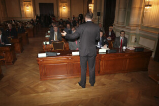 Spotkanie Społecznego Komitetu Wsparcia EURO 2012 i Pomorskiego Komitetu Organizacyjnego EURO 2012. Gdańsk, Nowy Ratusz. Nz. przemawia Paweł Adamowicz, Prezydent Gdańska