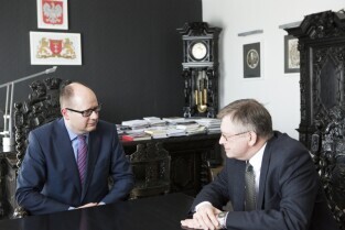 Urząd Miejski w Gdańsku. Ambasador Federacji Rosyjskiej w Polsce Sergey Andreev z wizytą u Prezydenta Gdańska Pawła Adamowicza