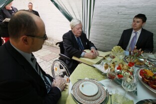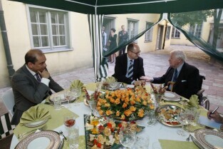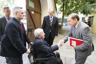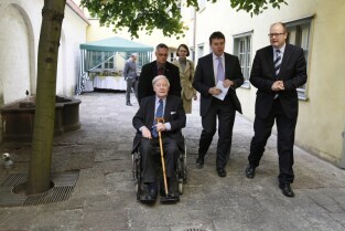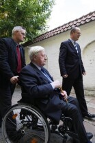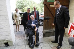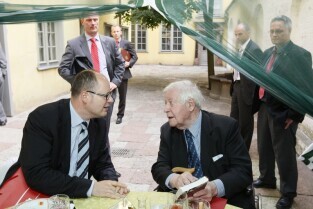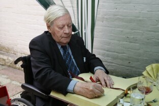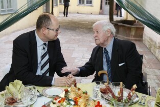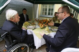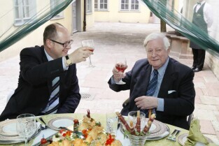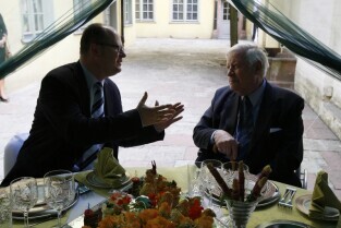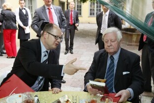 Spotkanie Prezydenta Gdańska Pawła Adamowicza z byłym Kanclerzem Niemiec Helmutem Schmidtem. Gdańsk, Dom Uphagena