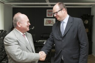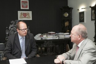 Spotkanie Prezydenta Gdańska Pawła Adamowicza z nowomianowanym Konsulem Federacji Rosyjskiej w Gdańsku Alexandrem Karachevtsevem (po lewej)