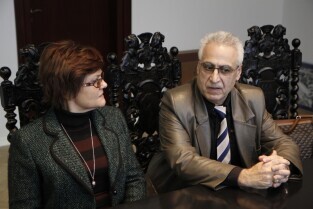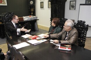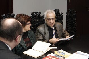 Spotkanie Prezydenta Gdańska Pawła Adamowicza z Serdarem Davranem Honorowym Konsulem Generalnym Republiki Turcji. Gdańsk, Urząd Miejski.