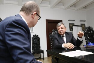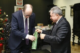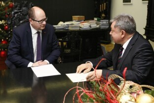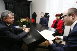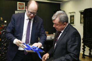 Urząd Miejski w Gdańsku. Spotkanie prezydenta Gdańska Pawła Adamowicza z panem Myronem Yankivem, Konsulem Generalnym Ukrainy w Gdańsku.