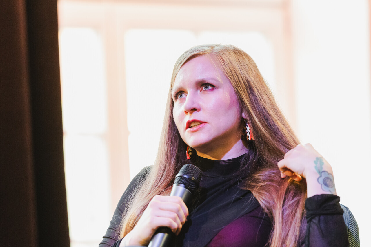 Gdańsk, ul. Długa 35. Spotkanie z Mateuszem Górniakiem i Dorotą Masłowską. Z goścmi rozmawiała Anna Karczewska.