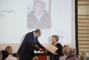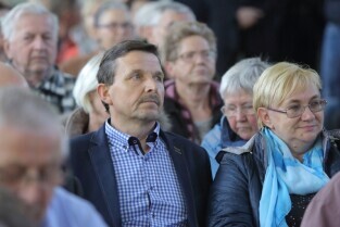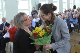 Gdańsk. Spotkanie Obywatelskie Prezydenta Gdańska z cyklu "Twoja Dzielnica Twój Gdańsk" z Mieszkańcami Dzielnicy Olszynka. Nz. Prezydent Gdańska Paweł Adamowicz i Jadwiga Kubik-Przewodnicząca Zarządu Dzielnicy Olszynka.