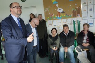 Gdańsk. Spotkanie Obywatelskie Prezydenta Gdańska z cyklu "Twoja Dzielnica Twój Gdańsk" z Mieszkańcami Dzielnicy Olszynka. Nz. Prezydent Gdańska Paweł Adamowicz i Wiceprezydent Gdańska Wiesław Bielawski.