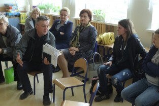 Gdańsk. Spotkanie Obywatelskie Prezydenta Gdańska z cyklu "Twoja Dzielnica Twój Gdańsk" z Mieszkańcami Dzielnicy Olszynka. Nz. Jadwiga Kubik-Przewodnicząca Zarządu Dzielnicy Olszynka, Radny Lech Kazimierczyk i Radna Teresa Wasilewska.