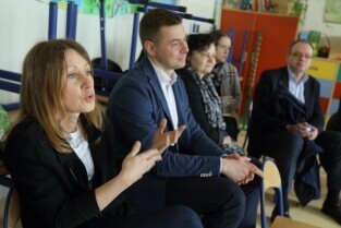 Gdańsk. Spotkanie Obywatelskie Prezydenta Gdańska z cyklu "Twoja Dzielnica Twój Gdańsk" z Mieszkańcami Dzielnicy Olszynka. Nz. Wiceprezydent Gdańska Wiesław Bielawski i Wiceprezydent Gdańska Aleksandra Dulkiewicz.