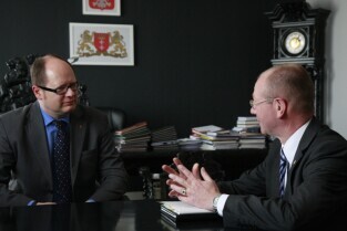 Urząd Miejski w Gdańsku. Spotkanie Prezydenta Gdańska Pawła Adamowicza z Arne Wulffem, szefem Kancelarii Kraju Związkowego Szlezwik-Holsztyn.