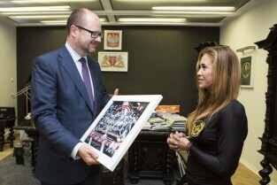 Spotkanie Prezydenta Gdańska Pawła Adamowicza z Prezesem World Fitness & Body Building Federation Edmundasem Daubarasem oraz Aleksandrą Kobielak