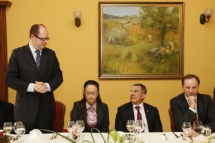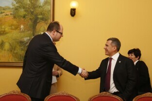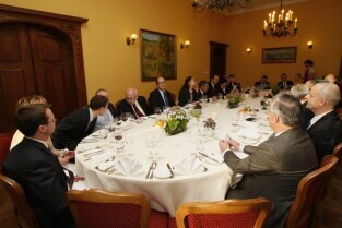 Spotkanie z Prezydentem Republiki Tatarstanu Rustamem Minnikhanovem, w którym wzięli udział Marszałek Woj. Pomorskiego Mieczysław Struk, Prezydent Gdańska Paweł Adamowicz oraz przedstawiciele pomorskiego biznesu. Gdańsk, Villa Uphagena