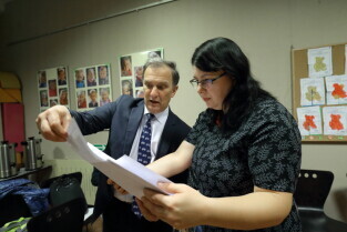 Gdańsk. Spotkanie Prezydent Gdańska Aleksandry Dulkiewicz z Radą Dzielnicy Orunia - Św. Wojciech - Lipce. Nz. Jacek Skarbek prezes GIWK i Agnieszka Bartków-przewodnicząca zarządu Rady Dzielnicy Orunia - Św. Wojciech - Lipce.