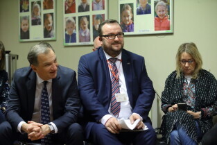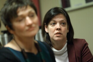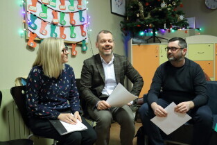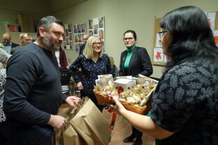 Gdańsk. Spotkanie Prezydent Gdańska Aleksandry Dulkiewicz z Radą Dzielnicy Orunia - Św. Wojciech - Lipce. Nz. Prezydent Gdańska Aleksandra Dulkiewicz, Agnieszka Bartków-przewodnicząca zarządu Rady Dzielnicy Orunia - Św. Wojciech - Lipce i Radny Cezary Śpiewak-Dowbór.