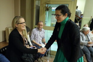 Gdańsk. Spotkanie Prezydent Gdańska Aleksandry Dulkiewicz z Radą Dzielnicy Orunia - Św. Wojciech - Lipce. Nz. Prezydent Gdańska Aleksandra Dulkiewicz i Agnieszka Bartków-przewodnicząca zarządu Rady Dzielnicy Orunia - Św. Wojciech - Lipce.
