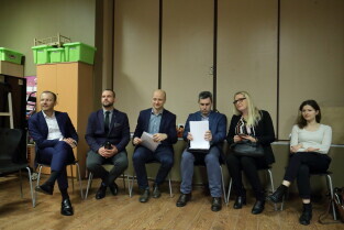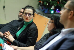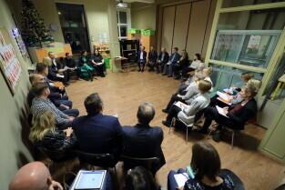 Gdańsk. Spotkanie Prezydent Gdańska Aleksandry Dulkiewicz z Radą Dzielnicy Orunia - Św. Wojciech - Lipce. Nz. Jacek Skarbek prezes GIWK, Marcin Dawidowski-Wydział Programów Rozwojowych i Radna Beata Dunajewska.