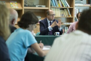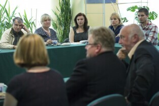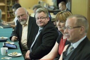 Gdańsk Osowa, ZSO nr 2. Spotkanie Prezydenta Gdańska Pawła Adamowicza (nz) z Radą Dzielnicy Osowa, podczas której m.in. ogłoszono decyzję o budowie basenu przy Szkole Podstawowej nr 81 w Gdańsku Osowie