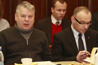 Nowy Ratusz. Spotkanie władz miasta z parlamentarzystami z gdańskiego okręgu wyborczego dotyczące nowych inicjatyw prawnych oraz spraw priorytetowych dla Gdańska. Nz. (od lewej) Marszałek Senatu RP Bogdan Borusewicz i poseł Jerzy Borowczak.