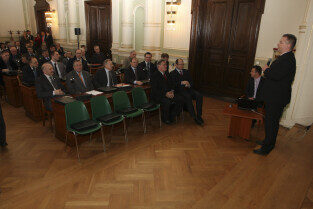 Spotkanie Prezydenta Gdańska Pawła Adamowicza z gdańskimi biznesmenami. Nz. przemawia Piotr Soyka, Prezes Stoczni Remontowej S.A.