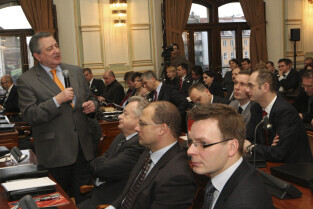 Spotkanie Prezydenta Gdańska Pawła Adamowicza z gdańskimi biznesmenami. Nz. przemawia Paweł Adamowicz