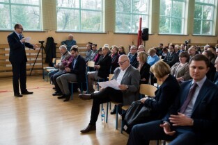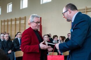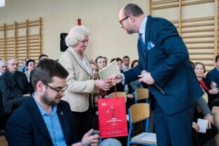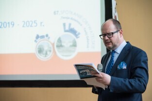 Gdańsk Oliwa, Zespół Szkół Architektury Krajobrazu i Handlowo - Usługowych, Józefa Czyżewskiego. Spotkanie Obywatelskie Prezydenta Gdańska z cyklu "Twoja Dzielnica Twój Gdańsk". Nz Pan Andrzej Stelmasiewicz - Fundacja Wspólnota Gdańska, wyróżniony przez Prezydenta Miasta Gdańska