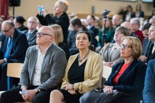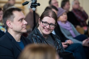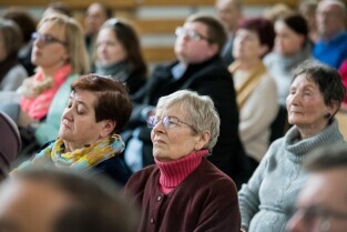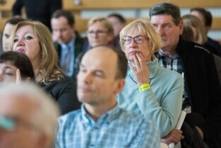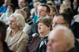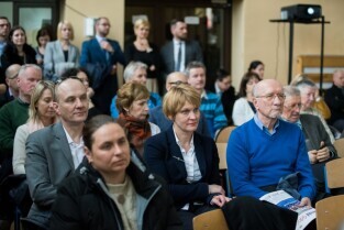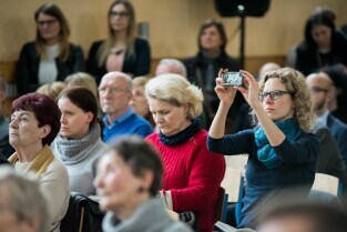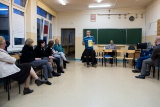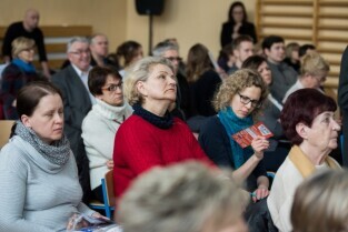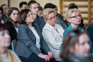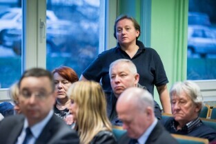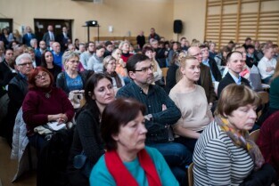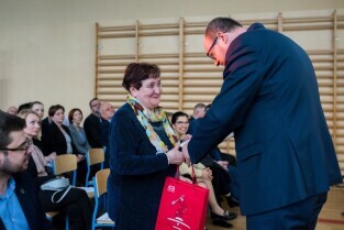 Gdańsk Oliwa, Zespół Szkół Architektury Krajobrazu i Handlowo - Usługowych, Józefa Czyżewskiego. Spotkanie Obywatelskie Prezydenta Gdańska z cyklu "Twoja Dzielnica Twój Gdańsk". Nz Pani Marianna Reszke - Klub Seniora "Prometeusz", wyróżniona przez Prezydenta Miasta Gdańska