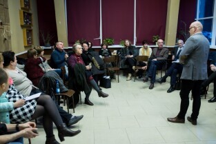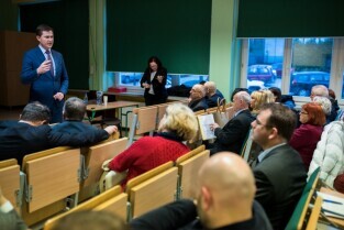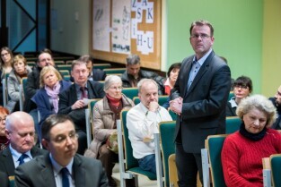 Gdańsk Oliwa, Zespół Szkół Architektury Krajobrazu i Handlowo - Usługowych, Józefa Czyżewskiego. Spotkanie Obywatelskie Prezydenta Gdańska z cyklu "Twoja Dzielnica Twój Gdańsk". Nz Tomasz Wawrzonek - kierownik działu Inżynierii Ruchu w Gdańskim Zarządzie Dróg i Zieleni